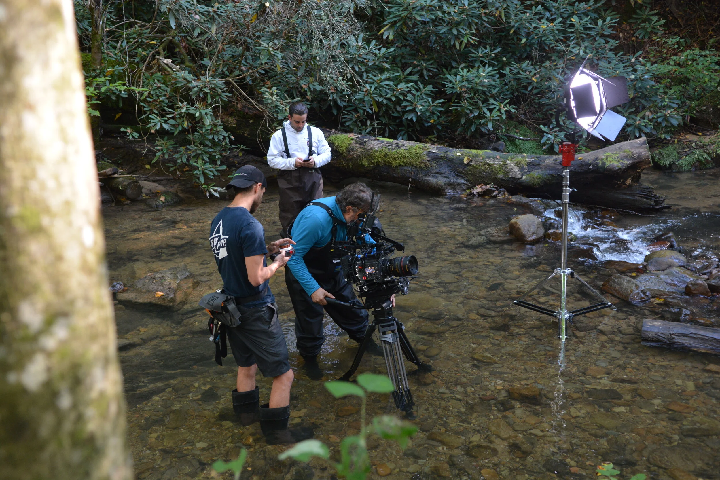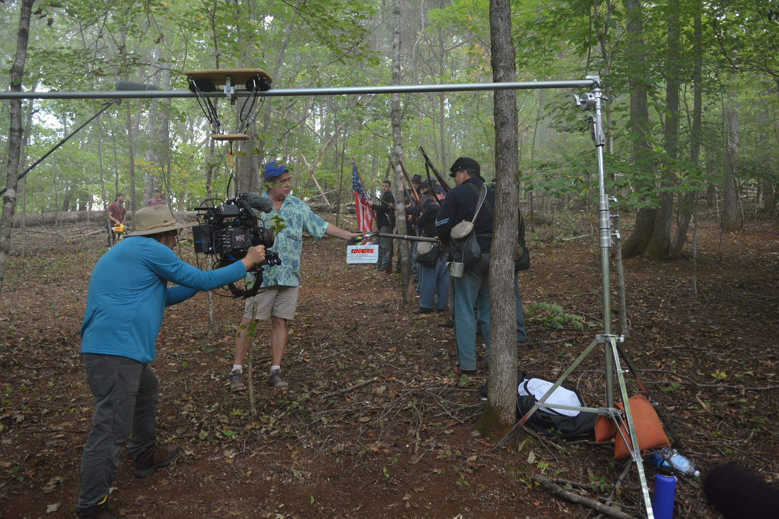 Richard De Witt and Shuler Hensley on the set of Marbles & Bullets, Iams Preserve, Knoxville, Tennessee